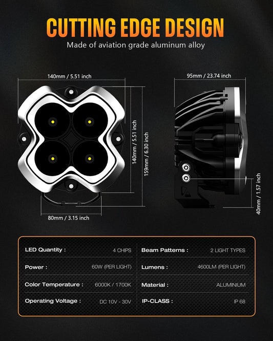 Novsight HALO Series 6" LED Pod Lights – High-Performance Off-Road Lighting with DRL & 60W Power (Pair)